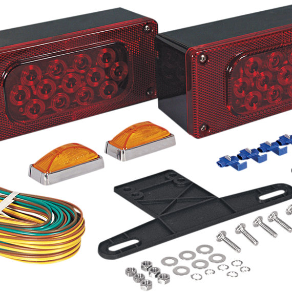 • Contains two universal mount taillights with red side markers and reflectors, two seated amber side markers, license bracket, 25' wiring harness and all necessary hardware