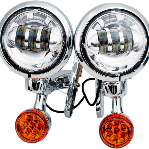 Caracteristicas: 4.5" LED auxiliary lights and turn signals have changeable amber and smoke lenses 4000K and 1450 lumens Easy installation