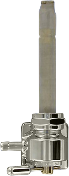 Caracteristicas: The same feature as OEM vacuum fuel valves - when valve is left in the "on" position with the motor off, fuel flow is shut off automatically High-quality, lustrous chrome finish is the same as Pingel's Power-Flo line of fuel valves Will also fit '84-'93 models if a vacuum source is tapped Outlet is a single 5/16" hose barb and will accept the stock vacuum line Available for '75-'93 models with a 22mm external thread - will also work for '94-'99 models with 22mm thread to eliminate vacuum shut off - available for '66-'74 tanks internally threaded for 3/8 NPT All descriptions are made from a seated position on the motorcycle with a reference from outlet position to the reserve position of the fuel valve lever. Made in the U.S.A.