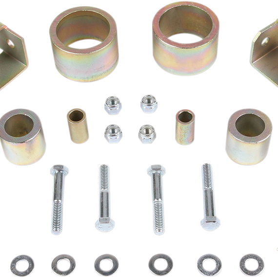 Caracteristicas: Lift 1" to 2" with big wheel kits Added clearance increases performance in mud, snow and rough terrain Give your ATV/UTV a boost over stumps and rocks Increased clearance reduces tire/fender rub Kits bolt on; instructions included