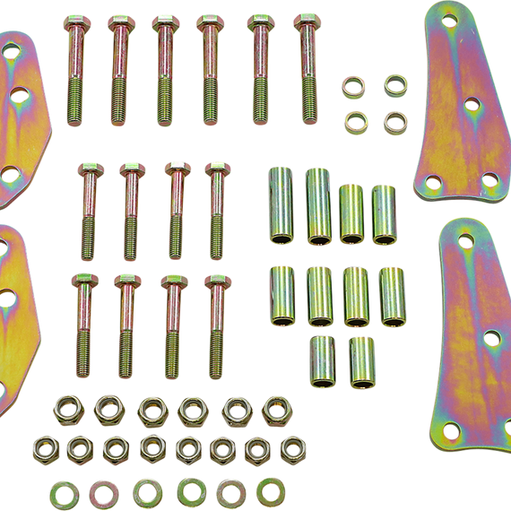 Caracteristicas: Lifts 1” to 2” with big wheel kits Added clearance increases performance in mud, snow and rough terrain Gives your ATV/UTV a boost over stumps and rocks Increased clearance reduces tire/fender rub Kits bolt on; instructions included Lift kits are for 4x4 models only (unless noted).