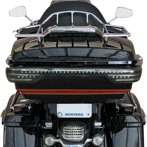 Caracteristicas: 3 LED light pipes wrap from the left and right side of the unit producing a smooth eye catching running light with increased side visibility An additional 11 LEDs on each side illuminate for a full contrast turn signal or brake/turn signal A center row of 18 super bright red LEDs act as a full contrast center brake light Compatible with both AM/FM antenna & CB antenna, also works on models with hidden antenna Plug and play DOT/SAE compliant