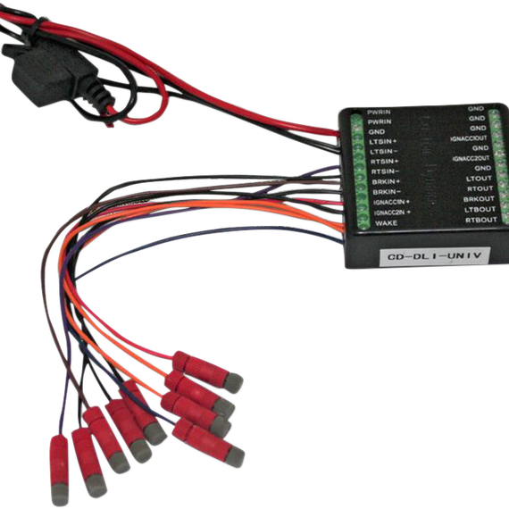 Caracteristicas: Allows you to connect aftermarket electrical and lighting accessories with total confidence Completely isolates the accessories from the vehicle’s main wire-harness without adding any additional load to the system A must-have on newer BCM/VCM/CAN bikes that have very sensitive electrical systems that do not allow the addition of electrical or lighting accessories Has an built in integrator function which combines brake and turn onto one wire, giving turn priority over brake which is very useful for adding Run-Brake-Turn function to a 3 wire LED (low-high-ground) There is also a built in trailer out which can be connected to an optional 4 pin trailer harness (sold separately) given you complete and total confidence of a 100% isolated trailer connector from the vehicle Total Isolation of all lighting and electrical accessories from vehicle Left Turn, Right Turn, Brake, Battery, Accessory Power Inputs Isolated Outputs: Left Turn, Right Turn, Brake, Run/Accessory Isolated Integrated Output: Turn/Brake Output Plug and Play (except for universal version) 45 Amp Max Total Capacity