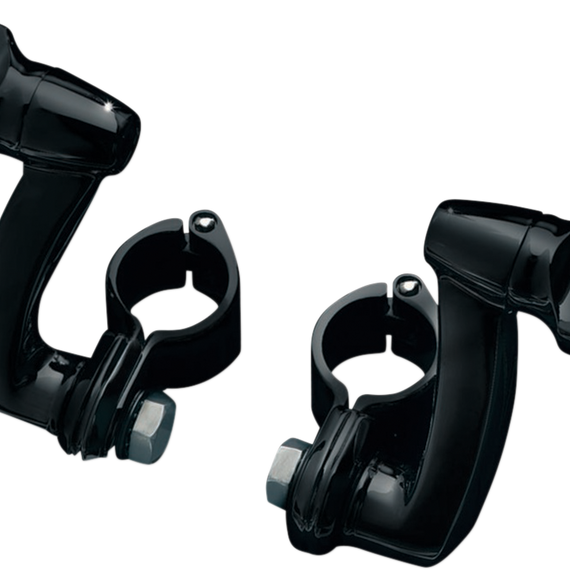 Caracteristicas: Measure 2-1/2" wide and 3-1/2" long Curved shape keeps the peg tucked in tight to the motorcycle Peg mount has 360° of adjustability to provide a full 6-1/2" range of adjustment to the footpeg position Incorporate a locking device so the mount will not rotate out of position Include Magnum clamps for easy installation