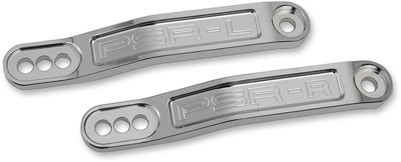 Caracteristicas: Lower center of gravity for better launches and rider confidence CNC-machined for excellent fit and finish Fully adjustable applications allow adjustments in small increments Two or three lowering positions available from PSR's regular lowering links. (Hole 1=1"; Hole 1 lowers 1") Fully adjustable available in black only