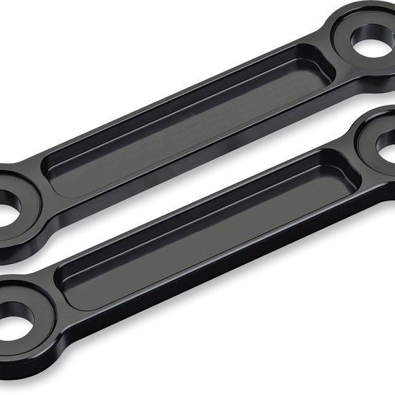Caracteristicas: Pull rods are produced with 7000 series aluminum alloy Front-end stability improved and rear end tracks straighter Stronger than stock Soften rear suspension Very light weight Lowers bike 1", 1.25" or 1.75" Made in the U.S.A.