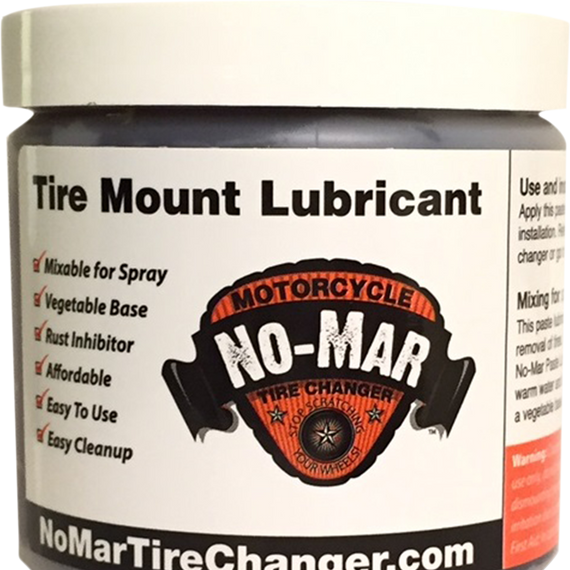 Caracteristicas: Super slick rubber lubricant Water soluble; clean up with water Dilute and use as a spray for tire removal or use directly as a paste for tire installation Rust and corrosion inhibitor added so you won't corrode your rims Use as a moisturizer for your inner tubes and installation of valve stems Eventually absorbs into your tire Stays where you put it, not runny (thick like petroleum jelly but without petroleum additives) Also works great as an o-ring lubricant Non-toxic, vegetable-based Use it directly as a paste for tire installation without the use of water to keep your air pressure stable in hot tires. Water expansion from conventional water & soap lubricants is the leading cause of higher hot tire pressures. Nitrogen is useless if you use water lubricants. NOT FOR INTERNAL USE SHELF LIFE: Stored at room temperature in a sealed container, the paste should usually last at least 12 months. Higher or lower temperatures, and/or if left uncovered will shorten the shelf life. If at the end of the shelf life the paste begins to liquify, it may still be used in a spray bottle for demounting tires. Tire paste lube is a consumable supply and is not covered under any warranty. Any "white flecks" observed in the paste are air bubbles from the filling process. If the paste is allowed to freeze it may separate. Leaving the jar of paste in the warm summer sun for a couple of hours, or microwaving it on high (with the lid off) for 10-15 seconds will allow it to be stirred back into its usual brown/beige color and consistency. The 1-Pint jar will screw into your No-Mar Tire Changer Tool Collar