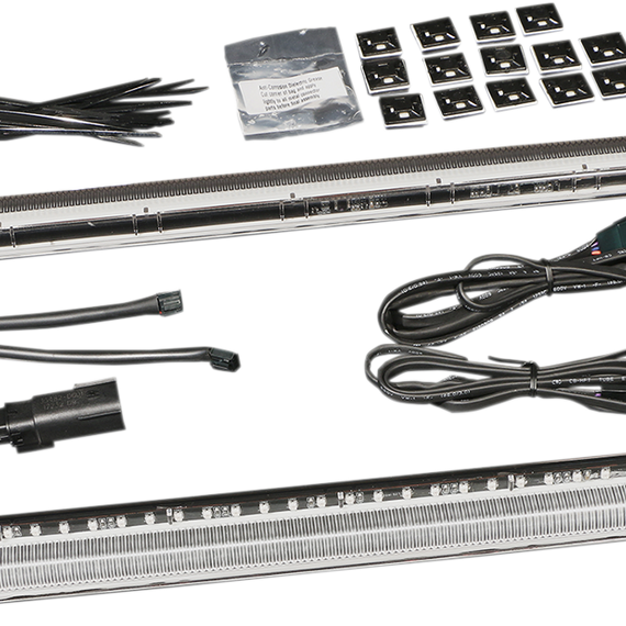 Caracteristicas: Function and style in one stealthy package Low-profile waterproof housings maintain plenty of ground clearance while cornering Smoked, shatterproof, polycarbonate lens with built-in optics Plug-n-Play installation with no drilling Red run, turn, & brake LED lights '97-'13 touring models require part # 2120-0983 (sold separately) 10-'13 Street Glide (FLHX) and Road Glide Special (FLTRXS)  models require part # 2120-0984 (sold separately)