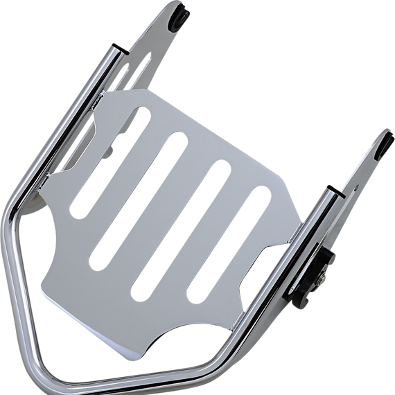 Caracteristicas: Fits Harley Davidson Touring Models with a 4-point docking hardware kit Carrying Surface: 10" x 10" Mounting Distance: 9 3/4" (measured from inside to inside of the mounting plates) Materials: 3/4" steel tubing, 16 gauge Steel Carrying Limit: 10 lbs Comes with Rotary Latches installed and ready to install onto the bike Must have a 4-point Docking Hardware Kit for proper installation Made in the USA