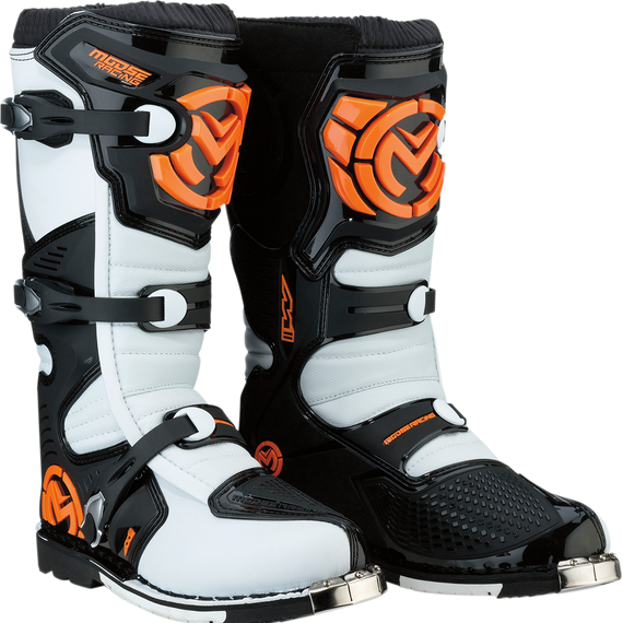 Caracteristicas: Chassis is constructed with polyurethane coated synthetic leather that is abrasion resistant and flexible Reinforced TPU shin, ankle, and foot plates are engineered to improve stability without sacrificing mobility Low profile compact lower toe box improves brake feel and ability to shift Integrated internal lace loop system secures foot and increases ankle stability Heavyweight suede leather inner calf guard improves abrasion and heat resistance Rigid steel shank reinforced sole eliminates flex and provides superior foot support Polyurethane plastic closure strap with metal buckle is adjustable and secure Internal soft EVA foam reinforced in impact areas improves comfort Multi-layer synthetic rubber outsole is long lasting and provides superior grip Polyester inner lining wicks moisture