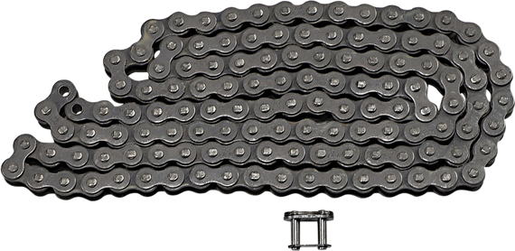 Caracteristicas: Heat-treated medium carbon alloy steel construction All components heat-treated and shot-peened for maximum strength Two-point pin riveting and solid rollers For motorcycles up to 500cc that did not come with an O-ring or heavy-duty chain as standard equipment Chains include clip connecting link