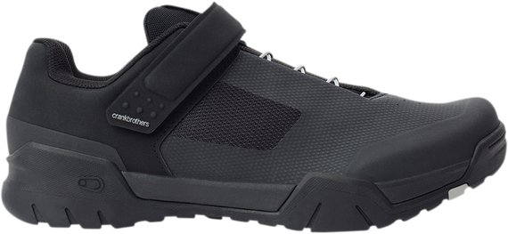 Caracteristicas: Speed lace and strap for fast and secure fitment Lace pocket for safety and style Ventilated windows with perforated mesh material for breathability Padded tongue for protection TPU reinforced areas for protection and abrasion resistance Heel dots for grip and superior heel hold Hidden eyelets for durability and clean design Match box optimized for any MTB pedals Ramp for easy clip-in/out mud clearance Pre-installed Match Shim for Crankbrothers pedals Pre-installed cleat for Crankbrothers pedals MC1 mid-friction compound for easy exit Directional angled and spaced toe/heel lugs for traction while hiking Ramped toe for walkability Stiff shank for power transfer Cushioned EVA midsole for shock absorption
