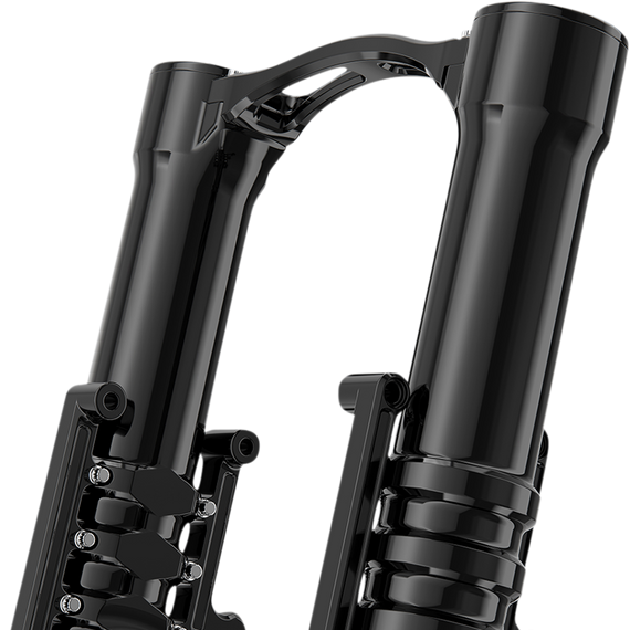 Caracteristicas: Performance driven design Integrated fork brace eliminates all flex under aggressive riding conditions 100% Billet aluminum construction Fits '14-'20 OEM fender and Ness Fat Tire custom fenders Does not fit with 21” custom applications
