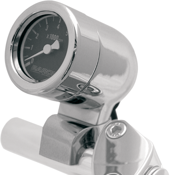 Mini-Bullet Electronic Tachometer with 1" Bar Mount - Chrome - Black Face - 3-3/8" L x 2-5/16" D