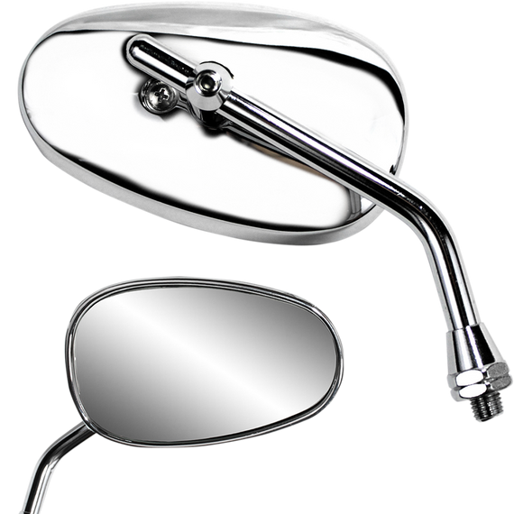 Caracteristicas: Classic "Harley¶© look" mirror in liquid chrome finish Flat lens is 4-3/4" x 2-3/4" Stem length adjusts to 5-1/2"