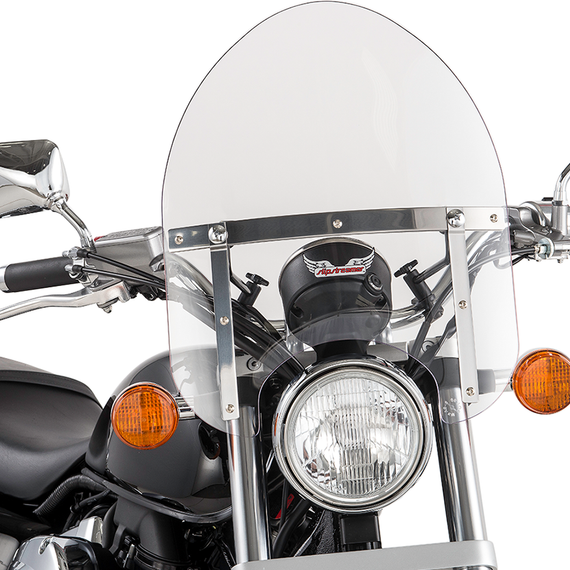 Caracteristicas: Medium-size windshield; 1" hardware included Universal handlebar clamp mounting Fits most H-D models using 1" buckhorn or pullback-style handlebars and a 5 3/4" headlight Made in the U.S.A.