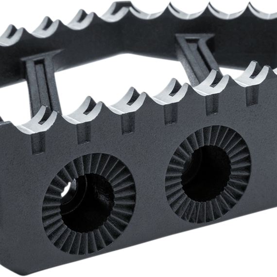 Caracteristicas: Rugged, MX-style mini floorboards made from durable cast aluminum Serrated tooth top surface provides no-slip secure footing Tapered design provides ample cornering clearance and generous foot room Boards measure 5-1/2"L x 3-3/4"W x 1-1/2"H Do not come with male-mount ends; install using OEM H-D footpeg mounts or Kuryakyn splined adapter mounts