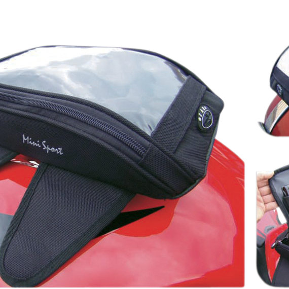 Caracteristicas: 1200-denier Technolast water-resistant, UV-treated polyester construction Compact size and a low-profile design makes this perfect for everyday rides Features large main compartment, map pocket on top and internal cell phone and pen holders Powerful rare earth magnets for easy tank mounting Measures 12" L x 7.5" W x 3" H (at widest point)
