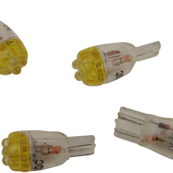 Caracteristicas: Feature four LEDs in one socket Replace existing wedge bulbs in gauges, marker lights and fender tip lights 12V, .5W lights Approximately 1.03" L x .445" D Sold to dealers in packs of 4