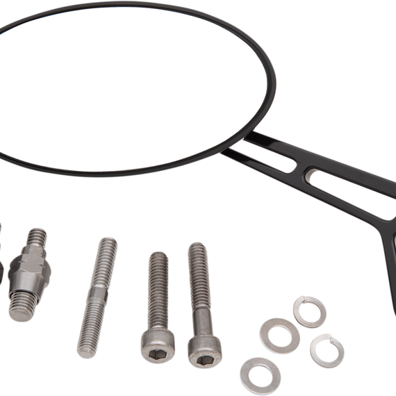 Caracteristicas: Can be installed on all H-D clutch or brake housings from 84-16; all necessary hardware included Eliminates unsightly adjustment screws on the back of the mirror head Unique stainless steel pivot rides in a special nylon bushing