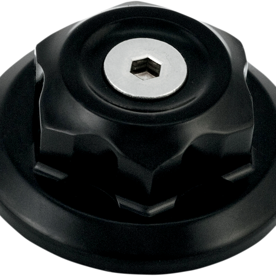 Caracteristicas: Designed to match RSD's fork cap and riser hole plugs, while taking styling cues from High Performance suspension components Replaces stock steering stem nut/bolt CNC machined from billet aluminum and stainless steel Made in the U.S.A.