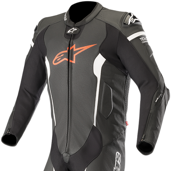 Caracteristicas: Multi-panel, fully anatomically profiled riding suit constructed from full grain bovine leather for optimized levels of performance, durability and abrasion resistance Updated performance fit for greater comfort and fit Compatible with Alpinestars’ class-leading Tech-Air® airbag system Designed with stretch gussets on rear to accommodate suit’s inflated volume without compromising seam strength or material integrity Tech-Air® compatibility, LED display on sleeve indicating airbag’s operational status, plus internal conduit for system vest’s ECU Internal hook and loop grip closure fixings plus cable conduits in order to seamlessly accommodate airbag system Replaceable Alpinestars Polyurethane (PU) Sport knee sliders can be positioned according to riding style Alpinestars’ Hyper-Res Stretch Fiber (HRSF) stretch inserts on crotch, back and underarms for excellent fit and movement Accordion leather stretch inserts on lumbar, knees, elbows and rear shoulders for excellent fit and reduced stress on body while in riding position Back hump is aerodynamically sculpted for superior air flow and performance at high speeds Pre-curved sleeves and legs construction for comfort and fit Strategically positioned perforation panels for maximum ventilation and suit breathability Integrated Polyethylene (PE) foam padding on the chest, hips, coccyx and upper arms Removable mesh inner liner for convenience and breathability Interior waterproof wallet pocket for safe and secure storage Zippered calf expansion gussets fit wide range of leg sizes and thicknesses for comfort Alpinestars race-derived, internal elbow, shoulder, knee and tibia protectors Dynamic Friction Shield (DFS) external dual density Thermoplastic Polyurethane (TPU) sliders on shoulders and knees Innovative new (removable) elbow slider is anatomically contoured and incorporates a triple-density polymer compound for improved performance in crash slides Chest pad compartments with advanced poly-foam padding (Nucleon chest pads available as accessory upgrade, sold separately)