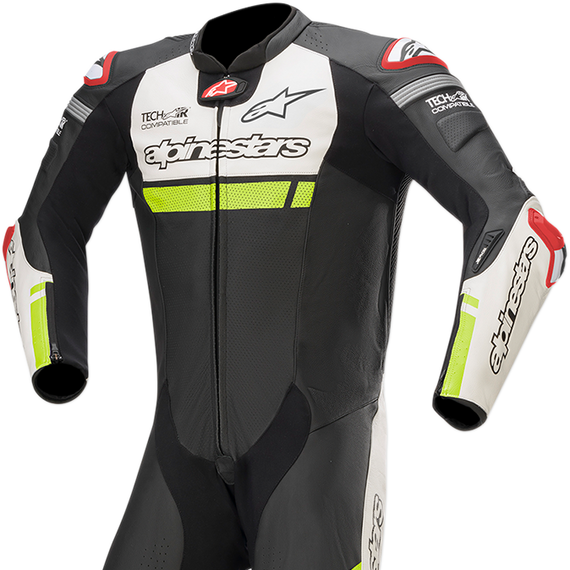 Caracteristicas: Tech-Air ® compatible Premium leather main chassis constructed from 1.3mm genuine bovine leather Large accordion stretch panels help movement and comfort on the bike HRSF stretch fabric panels on sleeves, crotch further improve fit and feel Ergonomic back hump, sculpted for better airflow and performance at high speed Pre-curved sleeve and leg construction Large perforated leather panels for maximum ventilation Localized perforations highly improve ventilation Printed graphic details Calf expansion gusset Integrated padding for increased comfort and protection Chest pad compartments for Alpinestars Nucleon chest pads available as accessory upgrade, sold separately Multi-layered knee construction reinforced with grip texture for optimal bike contact Removable inner mesh liner for convenience and breathability Inner waterproof wallet pocket Comfort fabric on collar Innovative new elbow slider is anatomically contoured and features a removable and replaceable screw-mounted insert slider Dynamic Friction Shield (DFS) external dual density TPU sliders on shoulder and knee Removable and replaceable Sport knee slider