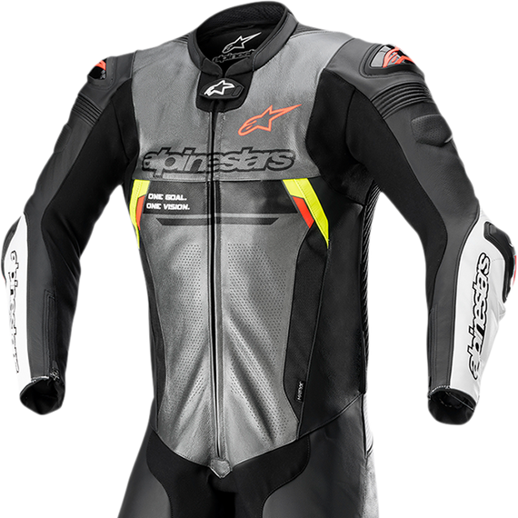 Caracteristicas: An engineered fit designed to deliver the highest level of active race protection, this suit is Tech-Air® ready and can accommodate the Tech-Air® 10 Airbag System with its extended hip protection or the Tech-Air® 5 Airbag System, complete with new race algorithm which is available as a download Innovative MATRYX® structural panels on the abdomen and back hump provide parametric performance for ventilation and superior mechanical resistance to tearing and abrasion while also being extremely thin and lightweight DFS shoulder, elbow and knew armor delivers optimal resistance against impacts and abrasion, and offers exceptional friction control HRSF polyamide stretch inserts for optimal abrasion resistance while ensuring enhanced freedom of movement Dedicated ‘Ignition’ graphic for a striking racing-inspired aesthetic Race fit – highly pre-curved body, arms and knees for enhanced performance Premium bovine leather with dual layers in seat area for superior abrasion resistance DFS armor delivers optimal resistance against impacts and abrasion, and offers exceptional friction control Internal Race spec GP-R armor is soft for comfort and delivers extended coverage for additional protection in key zones Bio-Flex Race hip armor for optimal resistance against impacts Snap connection system allows integration of Nucleon Race back protector (sold separately) Chest compartments can accommodate the Nucleon chest inserts (available as an accessory upgrade) Zippered detachable comfort liner with Polygiene BiostaticTM Stays Fresh Technology treatment for convenience