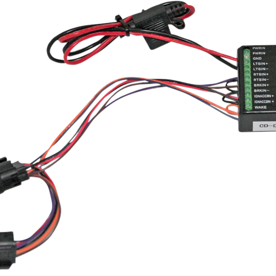 Caracteristicas: Allows you to connect aftermarket electrical and lighting accessories with total confidence Completely isolates the accessories from the vehicle’s main wire-harness without adding any additional load to the system A must-have on newer BCM/VCM/CAN bikes that have very sensitive electrical systems that do not allow the addition of electrical or lighting accessories Has an built in integrator function which combines brake and turn onto one wire, giving turn priority over brake which is very useful for adding Run-Brake-Turn function to a 3 wire LED (low-high-ground) There is also a built in trailer out which can be connected to an optional 4 pin trailer harness (sold separately) given you complete and total confidence of a 100% isolated trailer connector from the vehicle Total Isolation of all lighting and electrical accessories from vehicle Left Turn, Right Turn, Brake, Battery, Accessory Power Inputs Isolated Outputs: Left Turn, Right Turn, Brake, Run/Accessory Isolated Integrated Output: Turn/Brake Output Plug and Play (except for universal version) 45 Amp Max Total Capacity