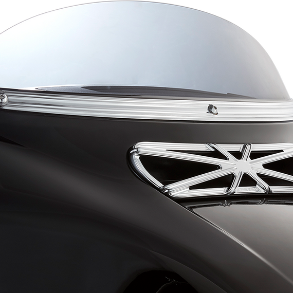 Caracteristicas: Fairing accents forged from aluminum then CNC machined to perfection Add style to the factory fairing vent Simple installation Matches the popular lines of Ness accessories