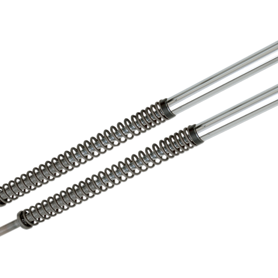Caracteristicas: Converts dual damper rod forks to high-performance cartridge forks Contains a pair of high-performance, gas-charged mono-tube fork cartridges and custom-tuned fork springs Improves resistance to front brake dive, front end stability, cornering and bottoming control Complete fork internal replacement kit No modification for forks required Lowering kits lower the front end up to 2"