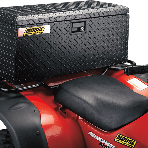 Caracteristicas: Gas-mounted shock improves box access and noise reduction while on the trail Rugged diamond plate aluminum construction is rust-resistant and more durable than plastic or cloth Attractive black powder-coated finish resists cracking and fading while minimizing reflection from the sun Black stainless steel latches with double post hooks provide extra security Drain and ventilation holes provide air circulation and easy cleaning Mount kit included for easy, secure attachment Include anti-slip/protective mat and lockable latches with two keys Gas-mounted shock improves box access and noise reduction while on the trail Made in the U.S.A. Dimensions of rear box: 32" L x 14" W x 14.25" H