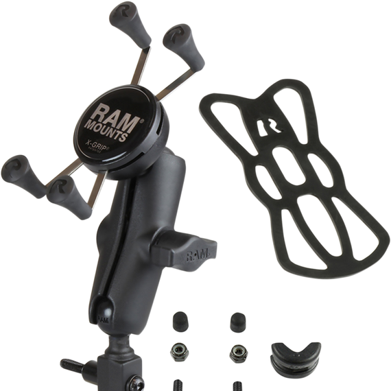 Caracteristicas: High-strength composite and stainless steel construction and powder-coated marine-grade aluminum Include a 1" diameter patented rubber ball and socket system with adjustment points at both ends of the socket arm; this, with a twist of the arm knob, allows you to move the X-Grip® mount to optimum viewing position Spring-loaded holder expands and contracts for perfect fit of device Rubber-coated tips will hold device firm and stable The mounting hardware for brake/clutch reservoirs include both standard and metric mounting bolts Kits include U-bolts that fit bars .5" to 1.25" in diameter Socket technology allows for multiple adjustment angles and articulation of device Include all necessary mounting hardware Compatible with devices (with or without case) that measure 1.875" minimum width, 3.25" maximum width and 0.875" depth Made in the U.S.A.