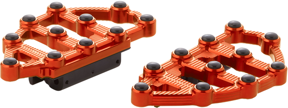 Caracteristicas: MX floorboards feature a detailed cut through design with integrated rubber inserts for excellent foot traction CNC machined from a solid block of billet aluminum Rubber inserts offer foot traction and protect the finish of the aluminum floorboard, replaceable Extended length for added foot room and comfort