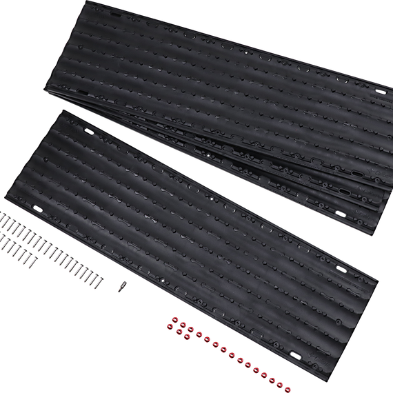Caracteristicas: Provides effortless loading and unloading of your ATV/UTV and snowmobiles Updated grip profile provides superior traction Proven friction-reducing glide technology System of air vents and water channels assures drying, to prevent deck rot Slotted fastening system allows for expansion and contraction, preventing warp High-impact plastic (HDPE) Includes stainless steel Torx T-20 screws and driver along with plastic bushings Easy to install 30" length accommodates standard trailer sizes Holes on top to make washing after a muddy day effortless Made in the U.S.A.