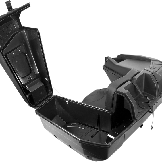 Caracteristicas: Designed to fit on all existing one-seater ATVs Wide variety of configurations and can be adapted to any situation 115-liter storage capacity with enough space for two MX helmets, lots of tools and even a gas can Glove compartment on the left side of the trunk Offers direct access inside the trunk while seated Optimized grip angle and elbow supports for more comfort Integrated truck cover gasket combines with a secure, efficient secure locking mechanism for an airtight and watertight seal Dimensions: 43" x 30" x 17" Quick and easy installation Not to be used as a seat while riding