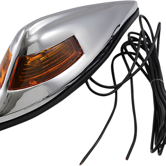 Caracteristicas: Improved version of Harley-Davidson's old-style front fender light is die-cast and chrome plated Includes mounting gasket, concealed mounting hardware and extra-long wire leads Features an amber lens Measure 6-7/8" L x 2-1/4" W x 2" H Replacement bulbs available