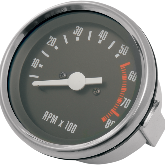 Caracteristicas: Original-style tachometer, manufactured to exact OEM specifications Features an 8000 rpm face and a stainless steel bezel 2-3/4” diameter body Also replaces stock 74-75 FX tachs by wiring impulse lead to points side of coil rather than alternator. Bulb and socket not included.
