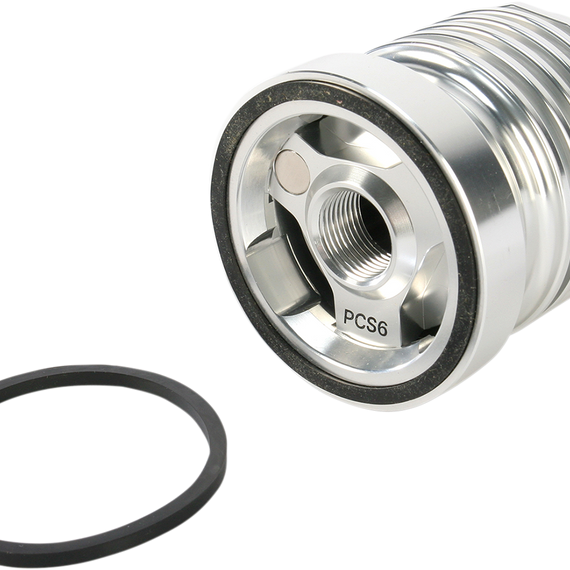 Caracteristicas: Consistent filtering across the entire surface and a flow rate nearly 7 times greater than paper filters Magnetic pre-filtering Billet aluminum filter case doubles as an oil cooler Progressive rate bypass combined with high flow characteristics of the filter media avoids unfiltered oil bypassing the filter during cold startup and high rpm Drilled wrench nut allows for easy removal and safety wire required at most race tracks