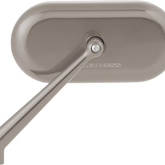 Caracteristicas: Clean oval style design Mirror head and stem both CNC machined from forged billet aluminum Heavy-duty stainless steel internal pivot hardware Laser-engraved Arlen Ness logo DOT sized mirror: 5-1/2" wide mirror head, 5" stem Hardware included