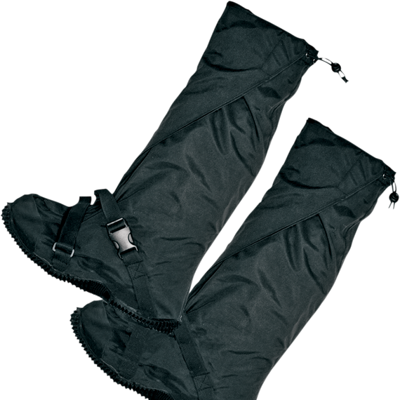 Caracteristicas: Heavy-duty 17" leggings easily fit over shoes and boots Constructed of durable, 600-denier rubberized nylon Feature adjustable calf and ankle straps, custom-fit calf wrap with top cinch draw cord/cord lock and a slip-resistant ripple rubber outsole Adjustable upper provides leak and burn protection