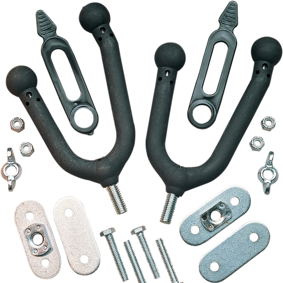 Caracteristicas: Carries everything from guns to garden tools Easy installation and removal Fits all handlebars and tubular racks Rubber snubbers included Skin-packed on display card Replacement mount blocks let you switch snubbers from handlebars to front or rear racks
