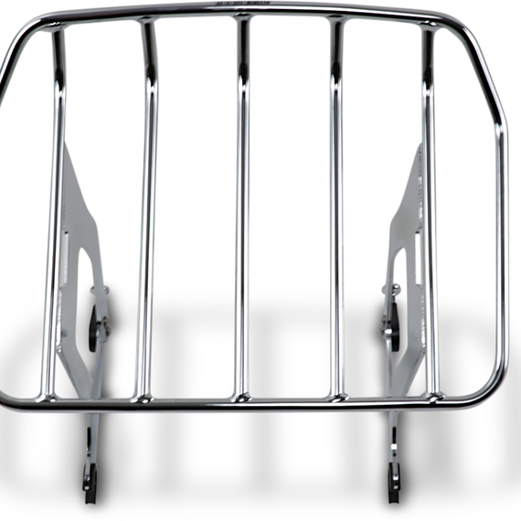 Caracteristicas: Uses Cobra's proprietary release mechanism, can be installed/removed in seconds Uses simple plunger-type spring for installation and removal Measures 14" L x 17.5" W Racks mount with either a Cobra Docking Kit or a Harley Davidson four-point docking kit (sold separately) Made in the U.S.A.