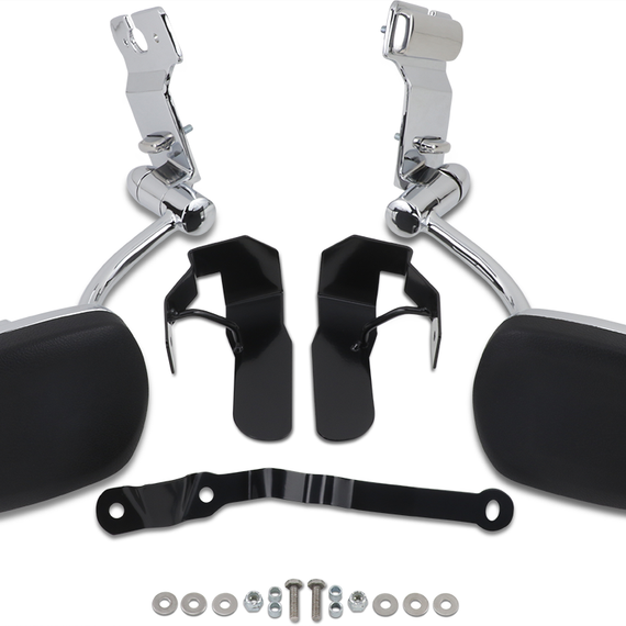Caracteristicas: Chrome mounting brackets fasten to the trunk and provide a sturdy mount for the swing-away armrests Padding matches the OEM texture and color Swing-out cup holder included for the ultimate passenger convenience