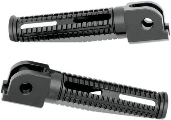Caracteristicas: CNC-machined from 6061 T-6 billet aluminum; replace stock footpegs Lighter than stock, slash cut for greater ground clearance; have machined, not knurled, grooves for better grip