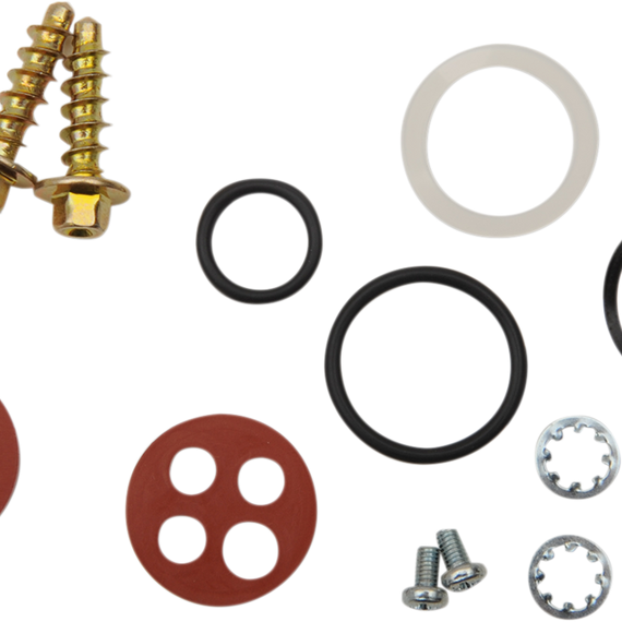 Caracteristicas: Includes components to rebuild one Fuel Tap Kits includes all necessary face screws, tank bolts, face gasket, tank gasket, diaphragm, o-rings, wave washer, and misc components Non re-buildable riveted Honda specific Kits include special drill and self-taping screws along with instructions for easy and inexpensive rebuild