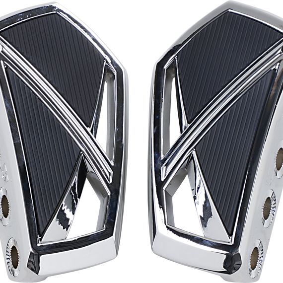 Caracteristicas: Constructed from quality A380 aluminum Durable EPDM rubber inserts offer traction and long-haul vibration dampening comfort Feature a pass-through design with sharp, sculpted lines, along with a much larger area to rest your foot compared to standard footpegs