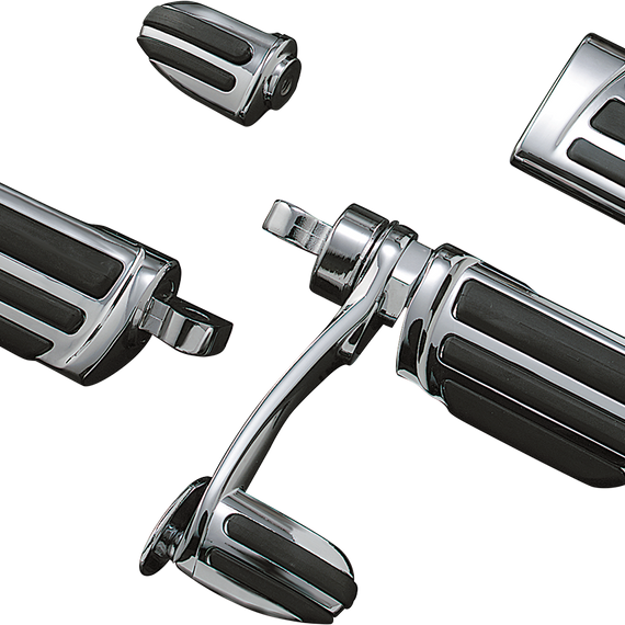 Caracteristicas: Flowing teardrop pegs add a unique custom look to any bike Mini Pilot pegs offer a sleeker, smaller style, come without male-mount ends Stirrup style has a guard to prevent your heel from melting on the front exhaust pipe