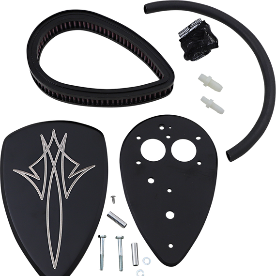 Caracteristicas: Slim 1-1/2" hi-flow reusable filter and specially designed back plate dynamically increases air flow and velocity Complete with breather kit, mounting hardware and micron-fabric raincoat for wet-weather riding Flow-bench and dyno-designed for substantially increased horsepower and torque Innovative styling enhances and accentuates your "V" Twin engine Easy-to-follow instructions included for a do-it-yourself install Set-back, thin-line design does not interfere with rider's leg Maximizes overall performance and fuel efficiency Made in the U.S.A.