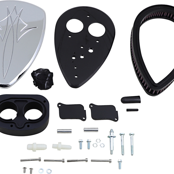 Caracteristicas: Slim 1-1/2" hi-flow reusable filter and specially designed back plate dynamically increases air flow and velocity Complete with breather kit, mounting hardware and micron-fabric raincoat for wet-weather riding Flow-bench and dyno-designed for substantially increased horsepower and torque Innovative styling enhances and accentuates your "V" Twin engine Easy-to-follow instructions included for a do-it-yourself install Set-back, thin-line design does not interfere with rider's leg Maximizes overall performance and fuel efficiency Made in the U.S.A.